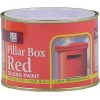 A non-drip Red Gloss top coat paint that adheres to both interior and exterior surfaces of materials such as wood, metal, and concrete leaving a high gloss finish.